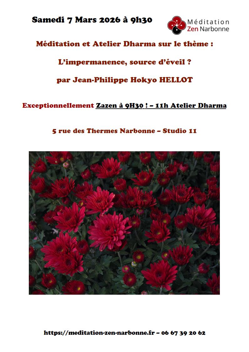 Atelier dharma sur le thème « L’impermanence, source d’éveil ? » par Jean-Philippe Hokyo HELLOT, moine zen.