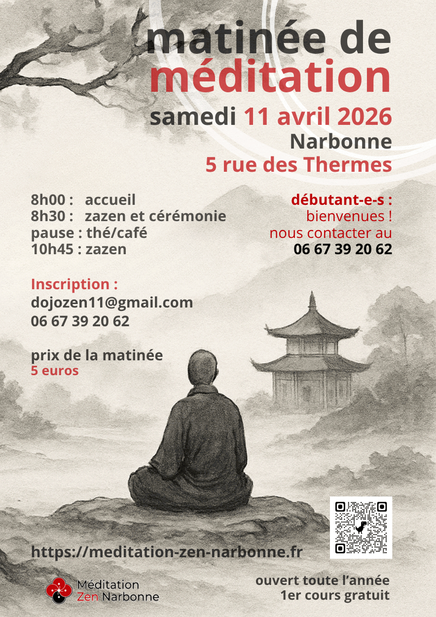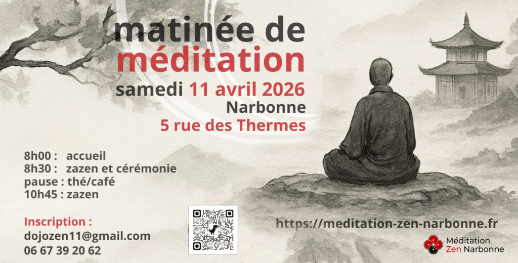 Télécharger l’affiche : PDF – Matinée de zazen du samedi 11 avril 2026 à Narbonne